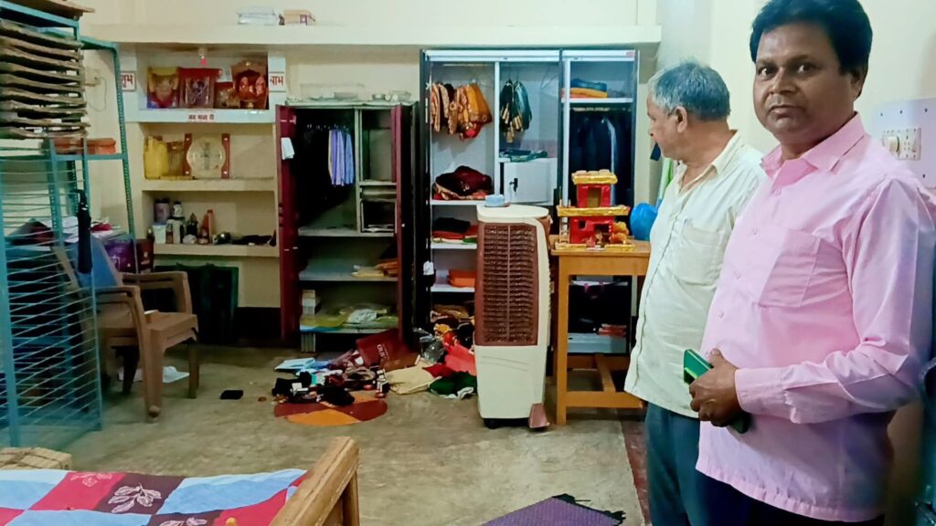 जब पर्व समाप्ति के बाद घर लौटे तो घर के मेन गेट का ताला टूटा हुआ देख घबरा गए वही जब घर के अंदर दाखिल हुए तो समान बिखरा देख उनके होश उड़ गए और फिर परिजनों को फोन कर घटना की जानकारी दी ।बताया जा रहा है कि पीड़ित के घर के पास लगे सीसीटीवी फुटेज में दो शातिर दिखे है। फिलहाल पुलिस मामला दर्ज कर आगे की करवाई मे जुटी है।।